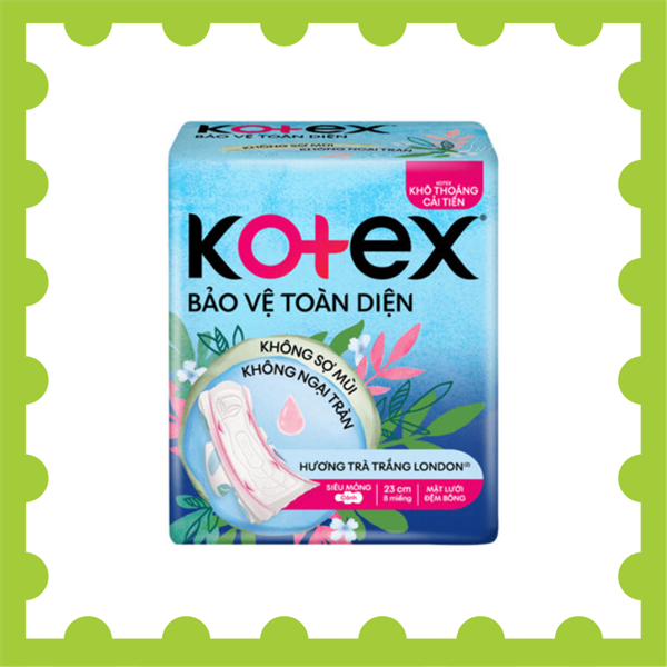 BVS KOTEX BẢO VỆ TOÀN DIỆN 23CM SMC 8 MIẾNG(1 GÓI + 1 GÓI BÔNG TẨY TRANG 20 MIẾNG)